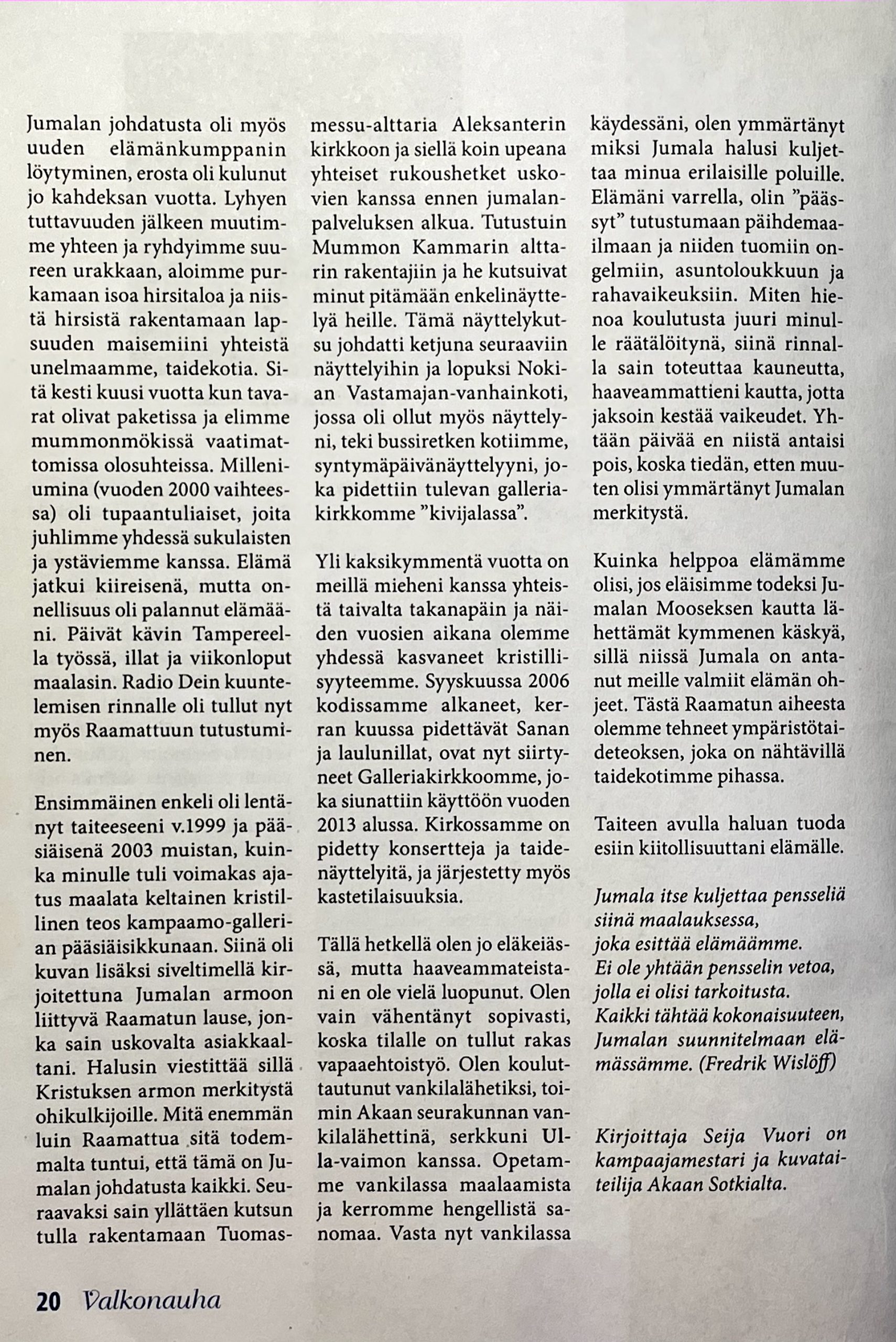 ’Taide ja hengellisyys voimavarana’
